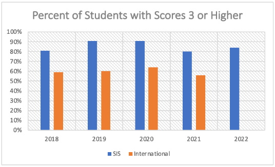 The Advanced Placement Program (AP) was created by the College Board with the goal of offering university level curricula to high school students. Although the program is based in the United States, it is recognized at universities throughout the world. Students who score well on their exams have a chance at earning university credit. They also have an edge when applying to the most competitive universities in the world. SIS currently offers 13 out of 38 courses. Each year we modify our course offerings to best fit student needs. Our courses cover subjects in the fields of math, science, foreign language, English, computer science, history, geography, art, psychology, and economics.